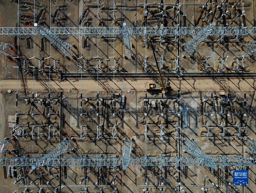 這是6月12日在肯尼亞馬查科斯郡拍攝的建設中的孔扎變電站(無(wú)人機照片)。