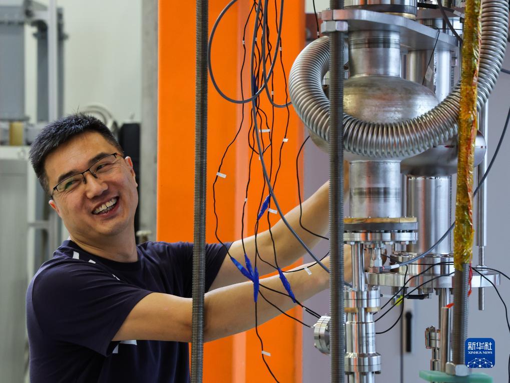 科研人員在中國散裂中子源加速器射頻技術(shù)實(shí)驗室維護設備(7月18日攝)。
