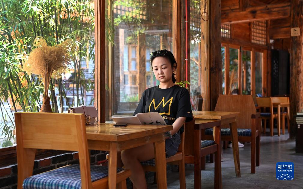 7月25日,游客在陜西省漢中市留壩縣城老街上的留壩書(shū)房民宿內休閑。