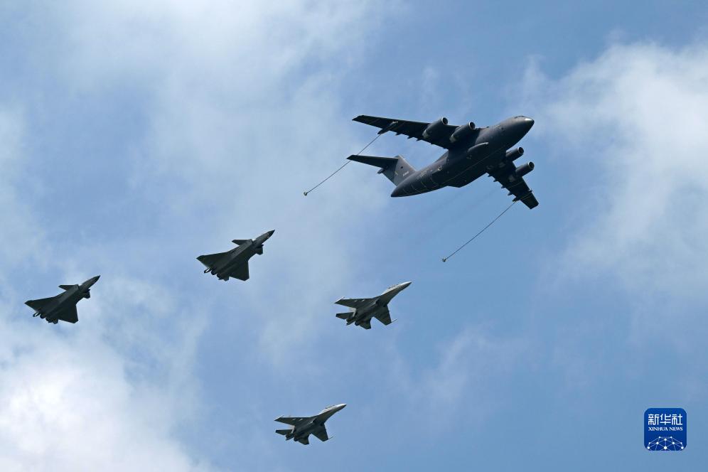 7月26日,在2023年空軍航空開(kāi)放活動(dòng)·長(cháng)春航空展上,運油-20單機和殲-20雙機、殲-16雙機加油編隊進(jìn)行飛行展示。