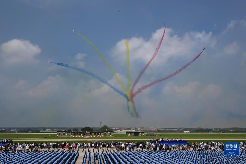 當日,2023年空軍航空開(kāi)放活動(dòng)·長(cháng)春航空展在長(cháng)春開(kāi)幕。多支飛行、跳傘表演隊共舞長(cháng)空,空軍以獨特空中禮儀歡迎新飛行學(xué)員加入“藍天方陣”,吸引更多有志青年為守護祖國藍天貢獻青春力量。
