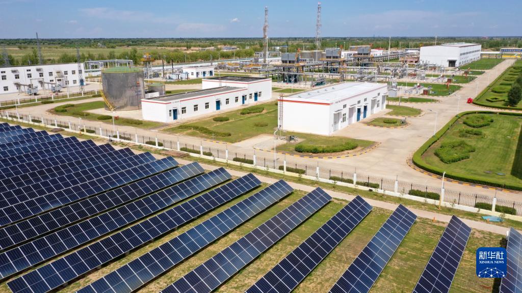 長(cháng)慶油田第五采氣廠(chǎng)蘇里格天然氣第六處理廠(chǎng)廠(chǎng)區內的光伏發(fā)電站(7月23日攝,無(wú)人機照片)。