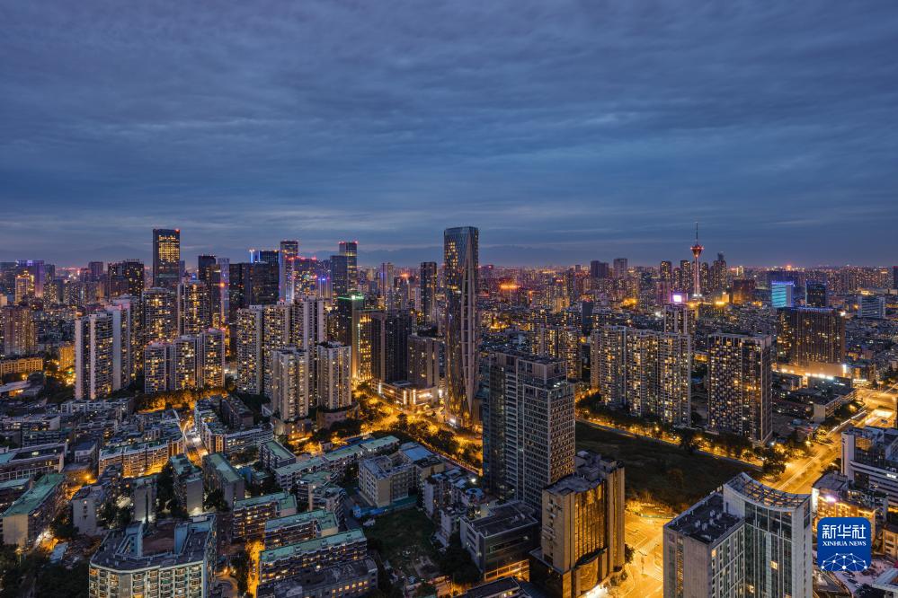 從東一環(huán)俯瞰夜幕下的成都市中心(7月18日攝)。