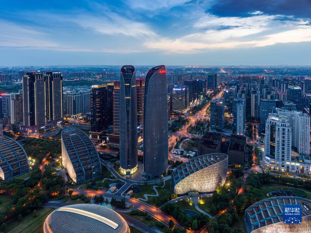 俯瞰夜色下的成都市金融城(7月18日攝)。