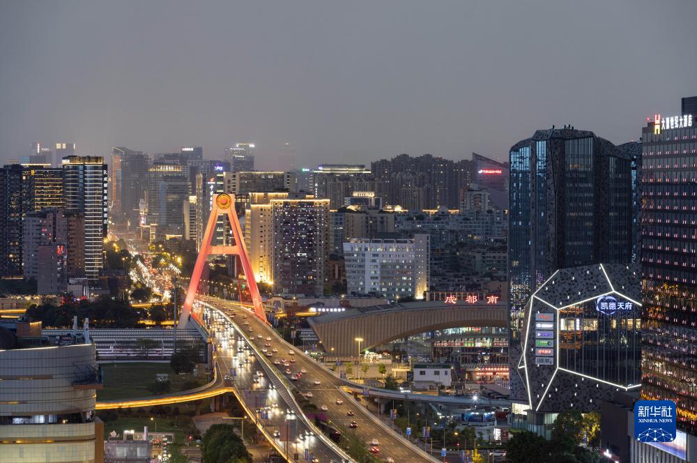 夜幕下的成都市火車(chē)南站和人民南路立交橋(7月25日攝)。