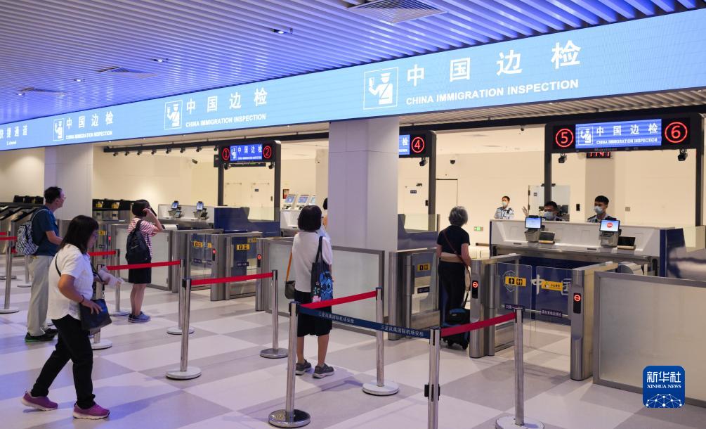 旅客在三亞鳳凰國際機場(chǎng)國際航站樓有序通關(guān)(7月26日攝)。