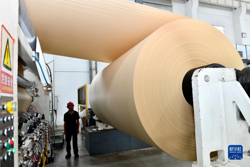 7月27日,在位于莒縣的日照華泰紙業(yè)有限公司,工人在生產(chǎn)線(xiàn)加工特種紙張。