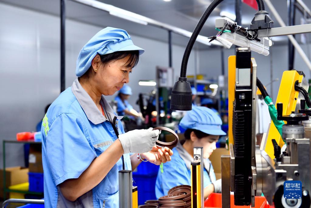 7月27日,在位于莒縣的山東東都汽車(chē)部件股份有限公司,工作人員查驗油封產(chǎn)品。