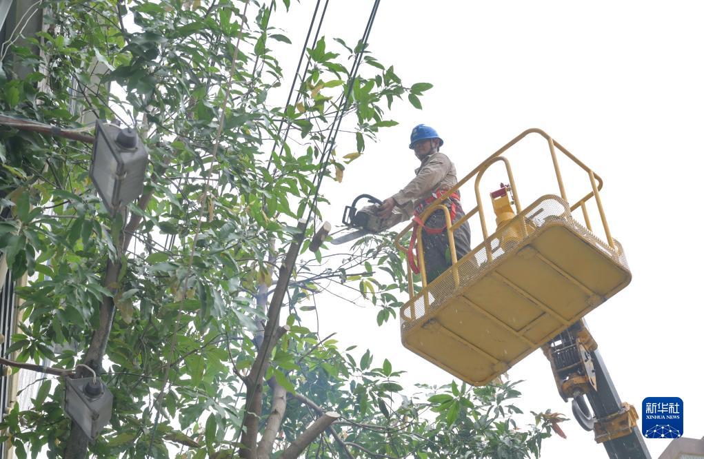 7月27日,國網(wǎng)漳浦縣供電公司員工在漳浦縣青年路修剪樹(shù)枝,防止臺風(fēng)天氣樹(shù)枝觸碰電力設施導致線(xiàn)路跳閘。