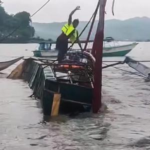 7月27日,在菲律賓黎剎省,人們在傾覆船只附近救援。