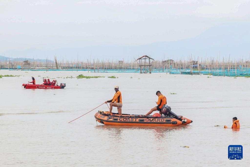 7月28日,在菲律賓黎剎省,菲律賓海岸警衛隊成員在傾覆船只事故現場(chǎng)開(kāi)展搜救行動(dòng)。