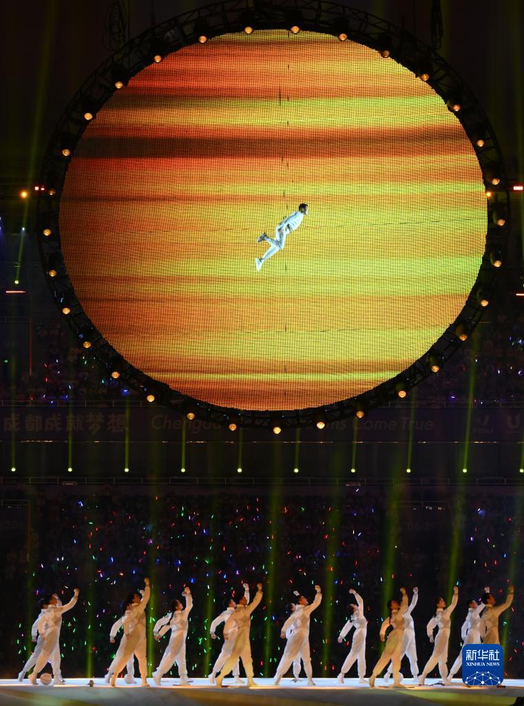 當晚,第31屆世界大學(xué)生夏季運動(dòng)會(huì )開(kāi)幕式在成都東安湖體育公園主體育場(chǎng)舉行。