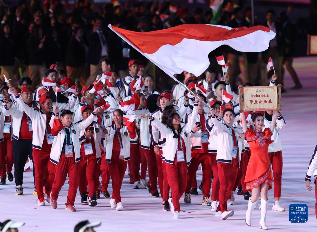7月28日,印度尼西亞大學(xué)生體育代表團在開(kāi)幕式上入場(chǎng)。