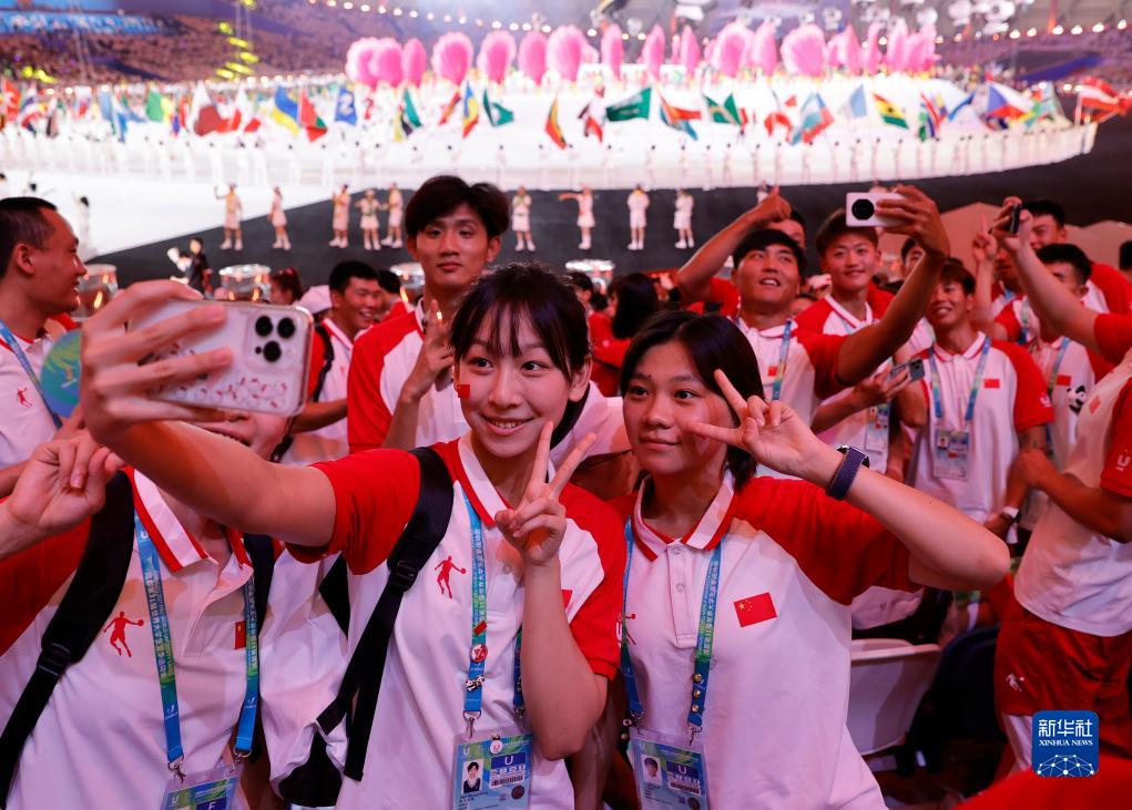 7月28日,中國大學(xué)生體育代表團成員在開(kāi)幕式上。