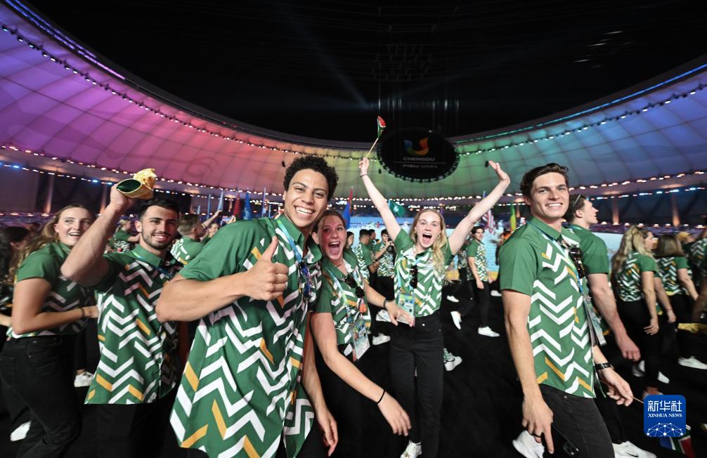7月28日,南非大學(xué)生體育代表團在開(kāi)幕式上入場(chǎng)。