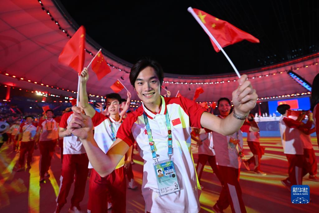 7月28日,中國大學(xué)生體育代表團在開(kāi)幕式上入場(chǎng)。