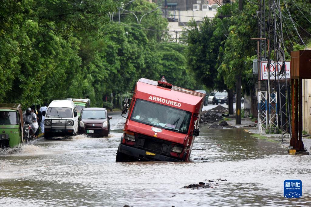 近日,巴基斯坦拉合爾強降雨導致局部?jì)葷?,給人們出行帶來(lái)不便。