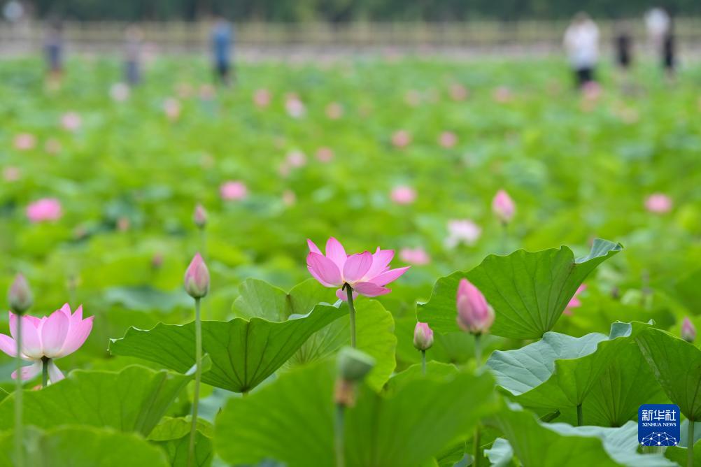 夏日,山西省太原市晉源區北大寺村的荷花競相開(kāi)放,吸引眾多游客前來(lái)觀(guān)賞。