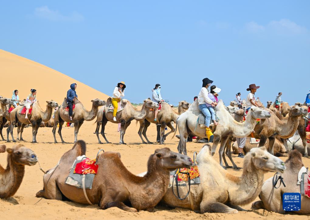 盛夏時(shí)節,內蒙古鄂爾多斯市達拉特旗境內的庫布其沙漠游客絡(luò )繹不絕,沙漠旅游一派火熱。游客們在飽覽大漠美景的同時(shí),也體驗騎駱駝、滑沙等項目的獨特魅力。
