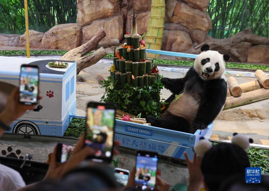 當日,全球唯一的三胞胎大熊貓“萌萌”“帥帥”“酷酷”迎來(lái)九周歲生日,三胞胎于2014年7月29日出生于廣州長(cháng)隆野生動(dòng)物世界華南大熊貓繁育基地。