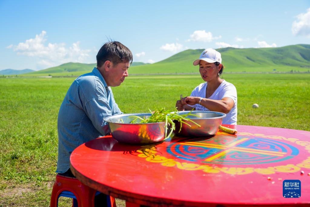7月25日,吳蘇道(左)與白薩仁在擇菜。