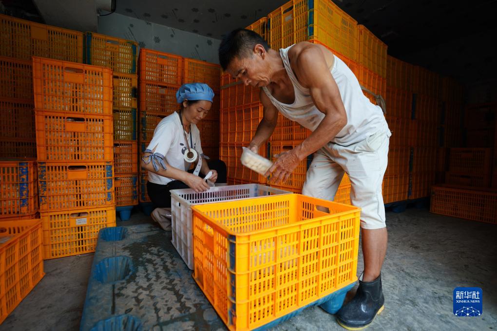 兩名工人在劉禹丹的豆腐加工廠(chǎng)內工作(7月27日攝)。新華社記者 陳欣波 攝