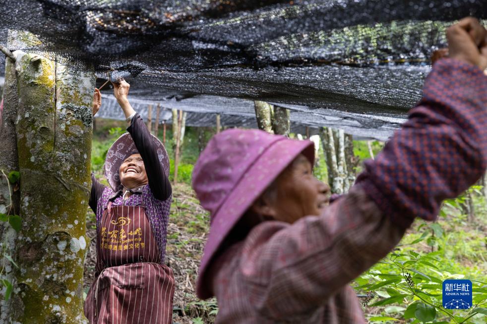 7月27日,工作人員在云南西疇縣西灑鎮的中藥材基地修補遮陽(yáng)網(wǎng)。新華社記者 呂帥 攝