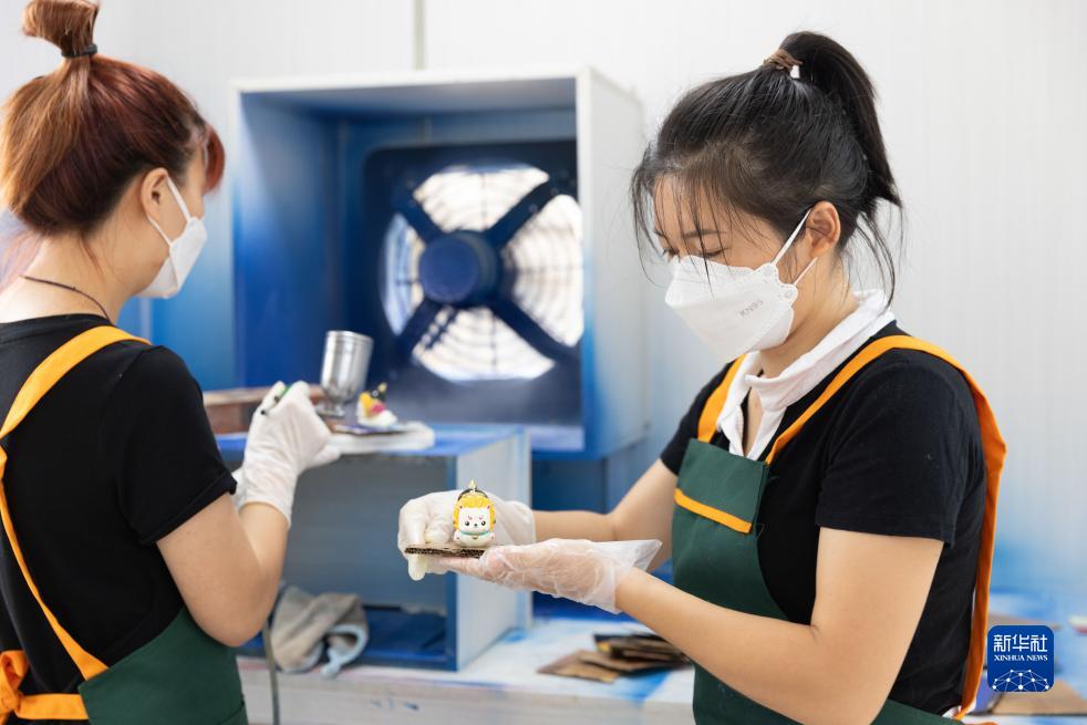 7月27日,工作人員在西疇湯谷文化創(chuàng )意產(chǎn)業(yè)園為產(chǎn)品噴漆。新華社記者 呂帥 攝