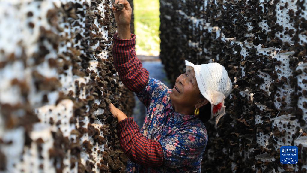 7月29日,在卓尼縣納浪鎮納浪村黑木耳種植基地,農戶(hù)在采摘黑木耳。