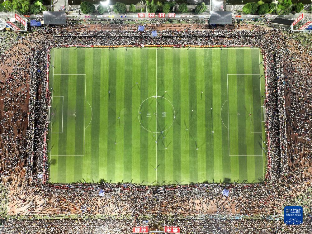 這是7月29日拍攝的夜幕下的“村超”總決賽現場(chǎng)(無(wú)人機照片)。新華社記者 歐東衢 攝
