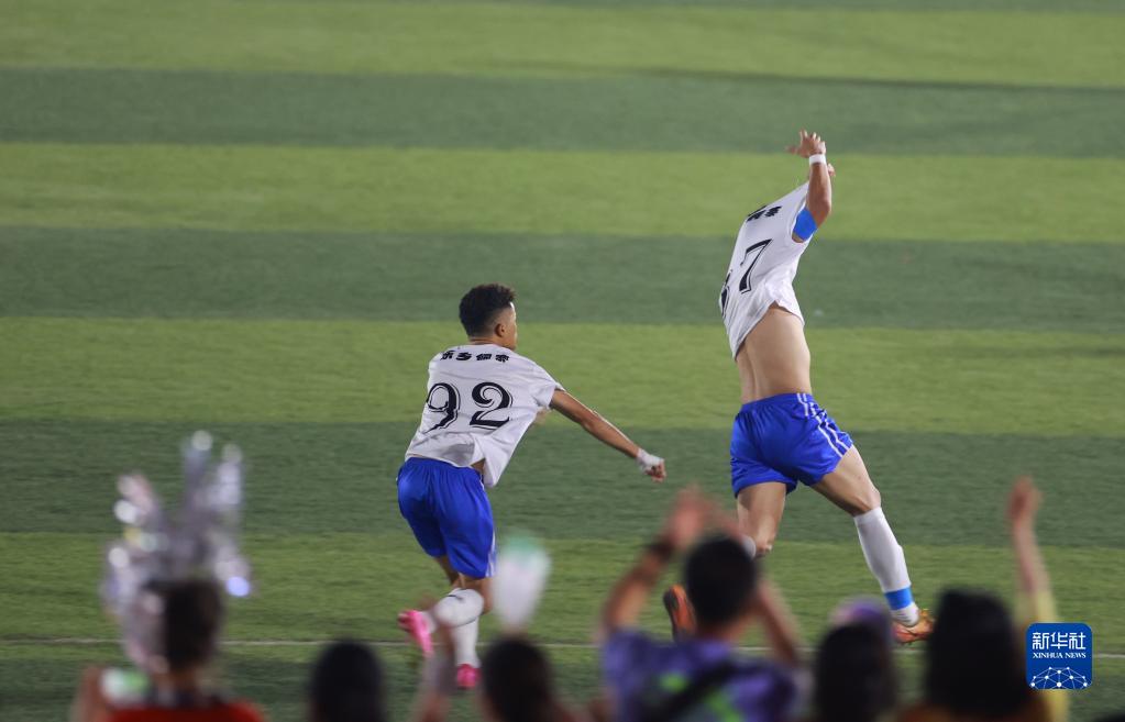 7月29日,忠誠村隊球員在決賽中取得進(jìn)球后慶祝。新華社記者 劉續 攝