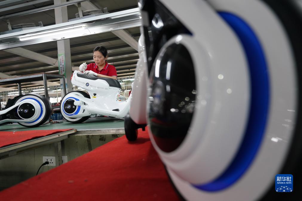 7月29日,河北省平鄉縣一家童車(chē)生產(chǎn)企業(yè)的員工在組裝電動(dòng)童車(chē)。