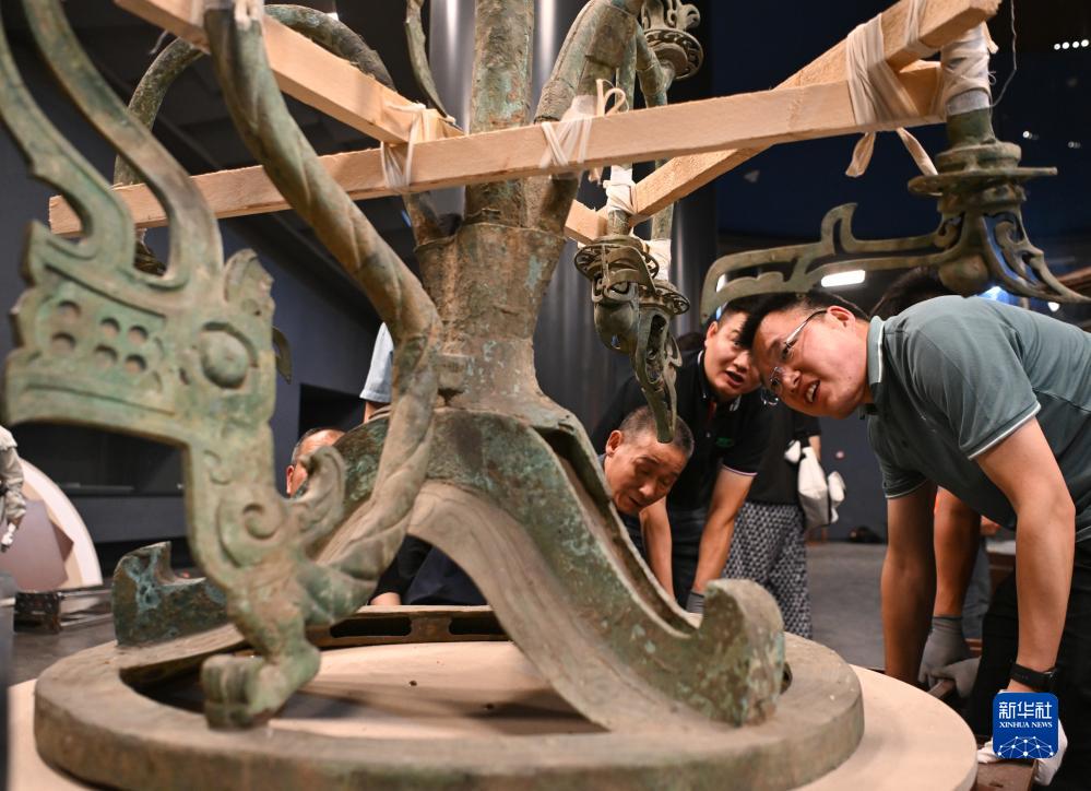 經(jīng)過(guò)一個(gè)多月時(shí)間的閉館后,7月27日,三星堆博物館新館在四川德陽(yáng)廣漢市試運行,一大批珍貴文物再次與公眾見(jiàn)面。其中,高3.96米、重360斤的Ⅰ號大型銅神樹(shù)是三星堆的“鎮館之寶”,也是新館的“壓軸之作”。在充分討論搬遷方案后,工作人員用兩天時(shí)間成功完成了它的保護性固定、分離、轉運、入庫等環(huán)節,并在新館試運行后正式展出。