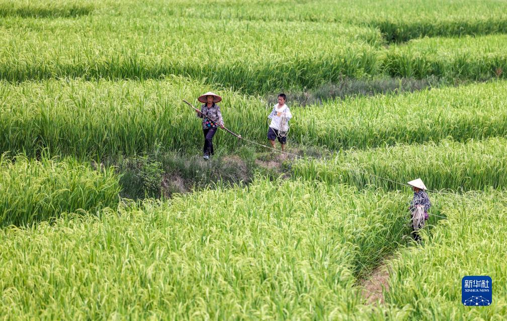 近日,貴州省黔東南苗族侗族自治州岑鞏縣的雜交水稻陸續抽穗揚花,進(jìn)入最佳人工授粉期,當地農戶(hù)紛紛走進(jìn)稻田,利用竹竿、繩索等工具“趕花”,讓雜交水稻充分授粉,為水稻豐產(chǎn)豐收和國家種子安全打下良好基礎。