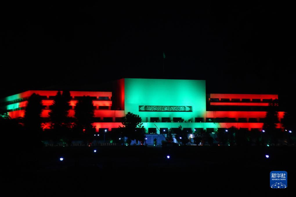 巴基斯坦首都地標建筑亮燈慶祝中巴經(jīng)濟走廊啟動(dòng)十周年