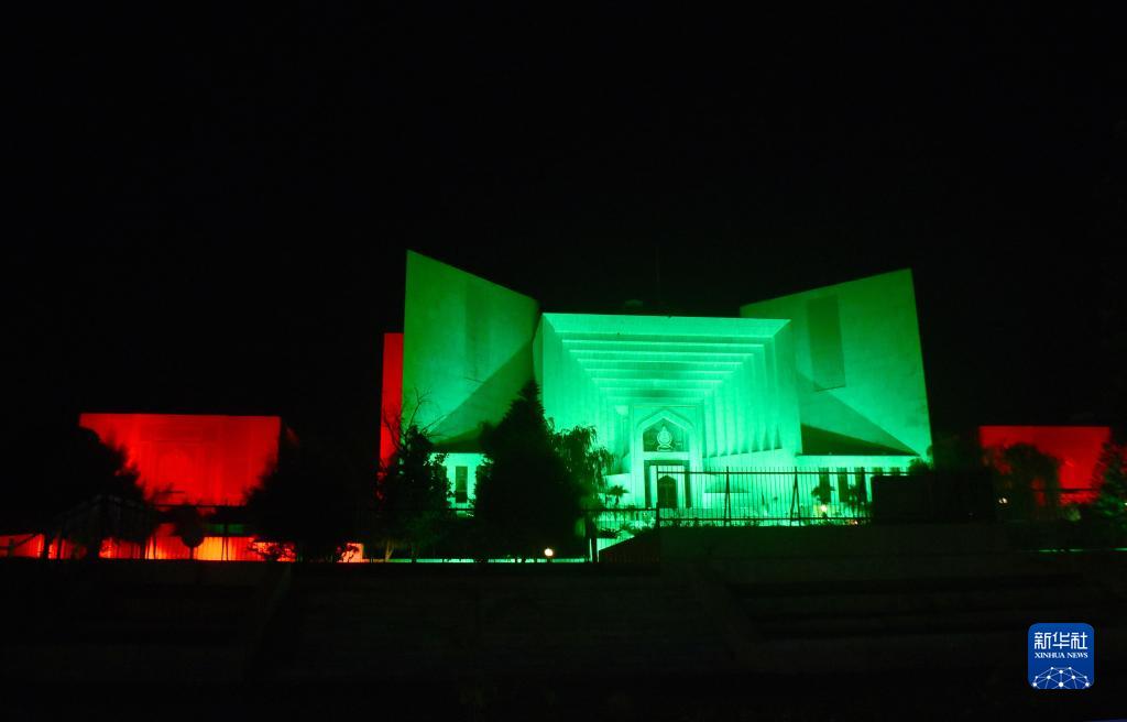 巴基斯坦首都地標建筑亮燈慶祝中巴經(jīng)濟走廊啟動(dòng)十周年
