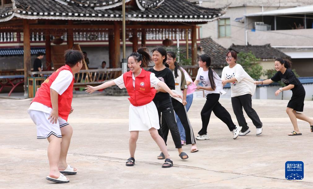 7月30日,大學(xué)生志愿者在貴州省黔東南苗族侗族自治州岑鞏縣水尾鎮馬家寨村和學(xué)生做游戲。暑期,來(lái)自貴州師范大學(xué)、天津師范大學(xué)、寧夏大學(xué)等10所大學(xué)的學(xué)生組成聯(lián)合支教志愿者隊伍,深入貴州省黔東南苗族侗族自治州岑鞏縣多個(gè)行政村,幫助暑期回家的學(xué)生開(kāi)展體育活動(dòng),解決學(xué)習中遇到的難題,為他們的暑期生活增色添彩。