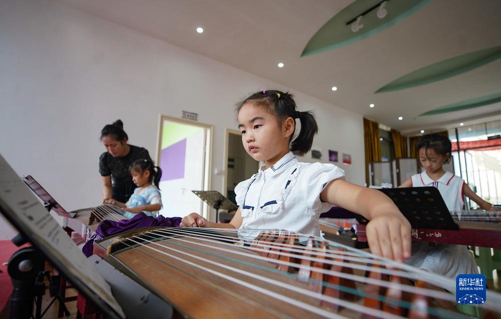 7月30日,孩子們在貴州省黔東南苗族侗族自治州丹寨縣一家音樂(lè )培訓機構學(xué)習古箏。