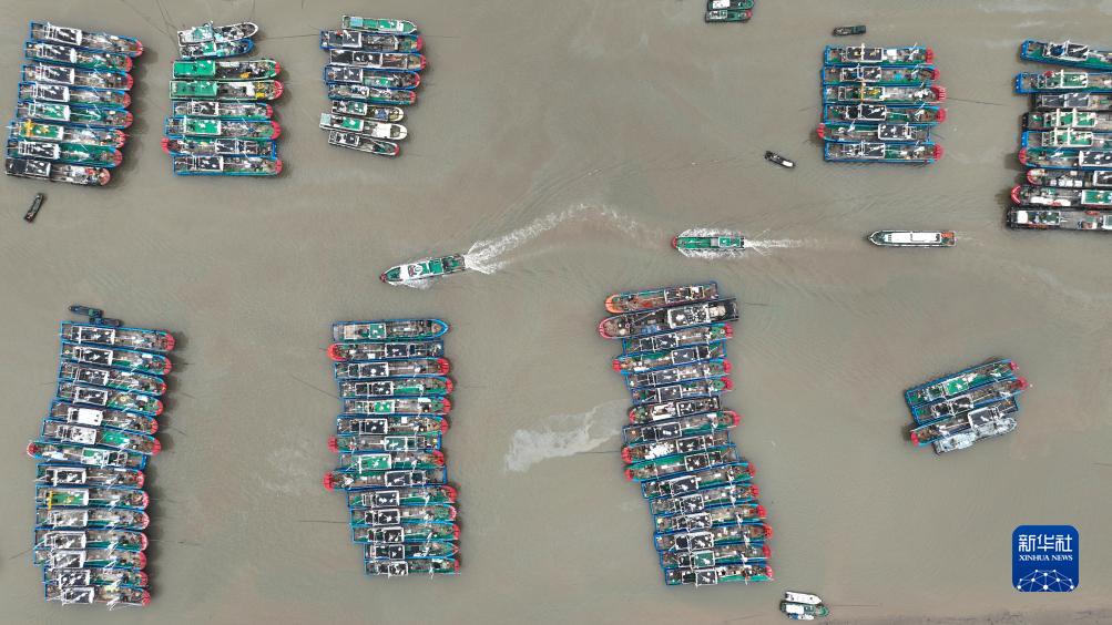 7月30日,浙江省舟山市普陀區沈家門(mén)漁港停泊著(zhù)躲避臺風(fēng)的漁船(無(wú)人機照片)。