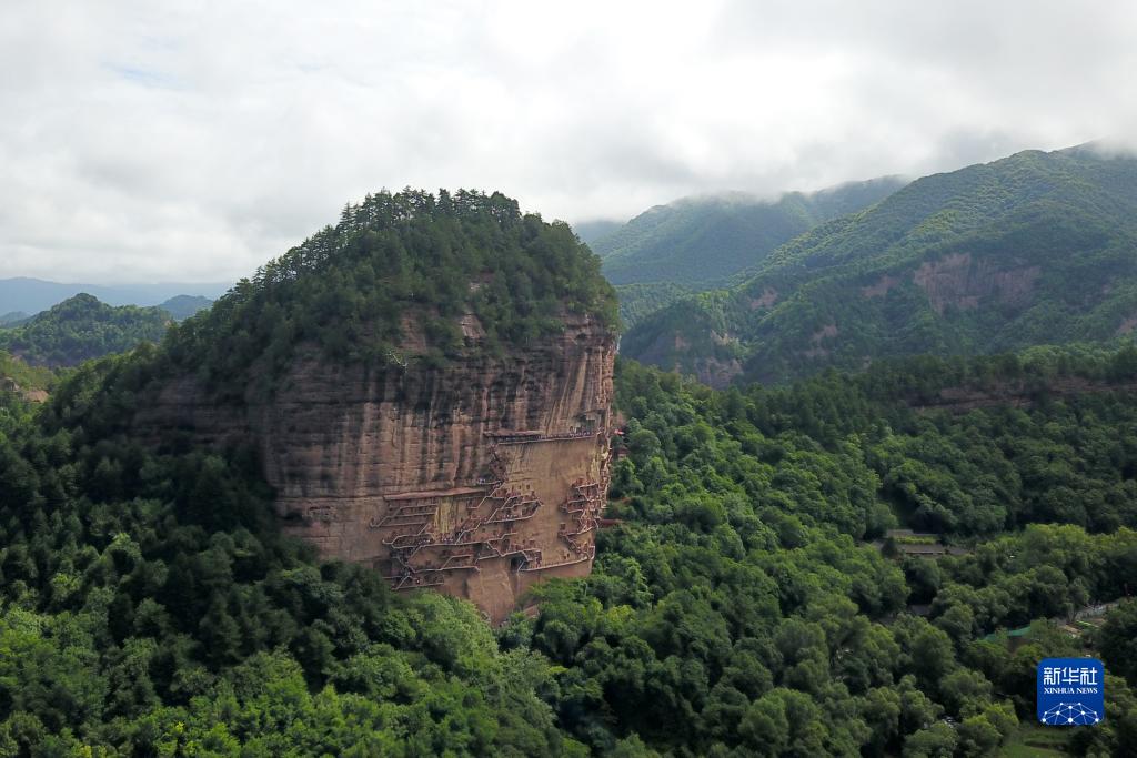 這是7月29日拍攝的麥積山石窟全景(無(wú)人機照片)。