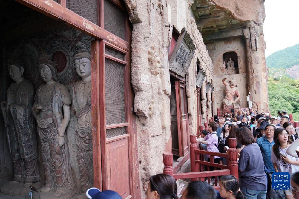 7月30日,游客在麥積山石窟參觀(guān)游覽。