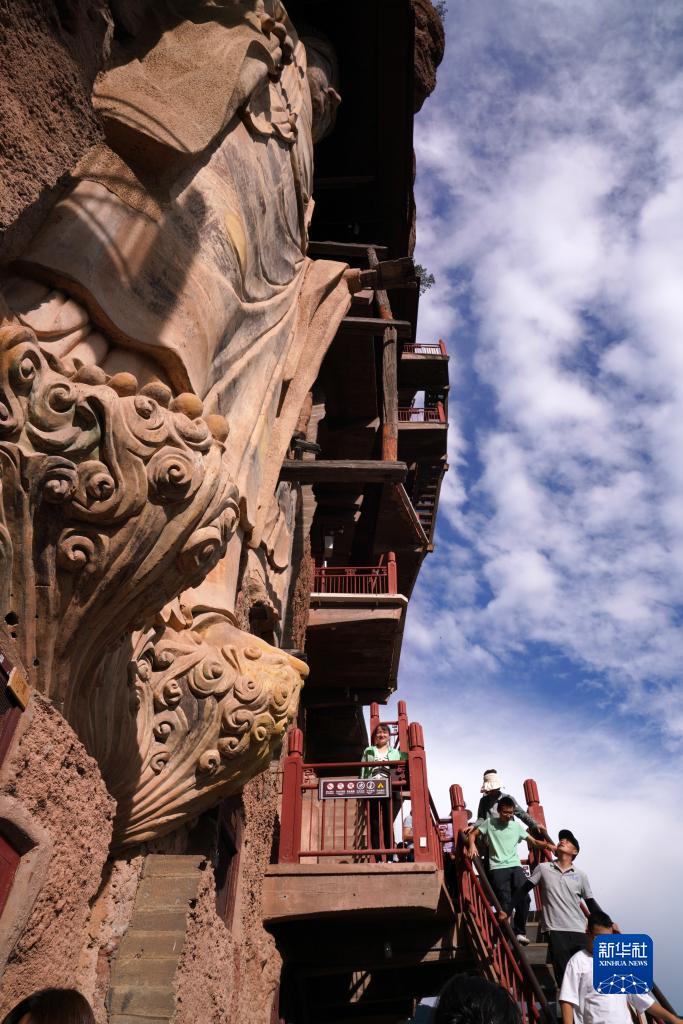 7月30日,游客在麥積山石窟參觀(guān)游覽。
