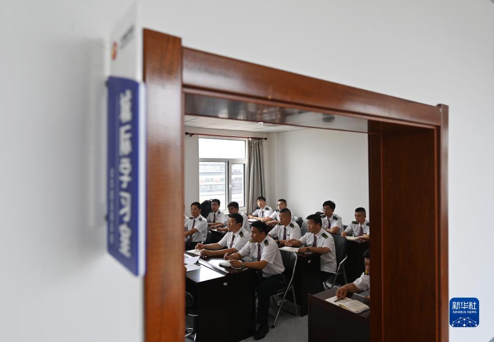 徐偉在天津機務(wù)段動(dòng)車(chē)組運用車(chē)間參加學(xué)習會(huì )(7月26日攝)。