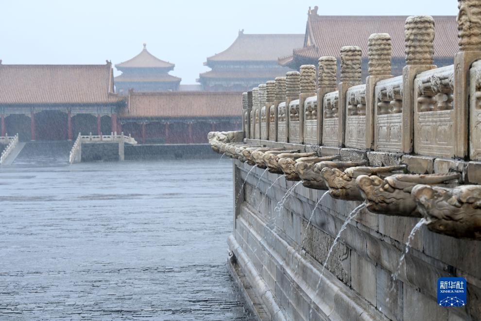 連日,北京迎來(lái)強降雨天氣,故宮再現“九龍吐水”,依靠精妙的排水系統,宏大的故宮建筑群,在暴雨中安然無(wú)恙。紫禁城的雨水排水系統始建于明代,故宮的地面順應北京地理環(huán)境特點(diǎn),整體走勢呈北高南低、中間高兩邊低,而且略有坡度。這一坡降為自然排水創(chuàng )造了有利條件,使積水能緩慢排泄。故宮保留至今的古代雨水溝的長(cháng)度超過(guò)15公里,其中暗溝長(cháng)度將近13公里。故宮內的排水溝渠全部通向內金水河,內金水河又與故宮城墻外側52米寬的護城河相連,并同周邊的外金水河、中南海等水系相通。