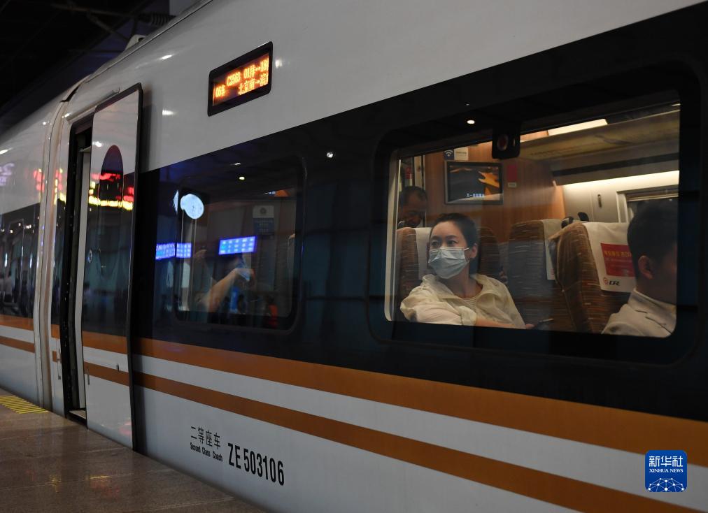 8月1日,在北京南站,旅客乘坐京津城際列車(chē)出行。