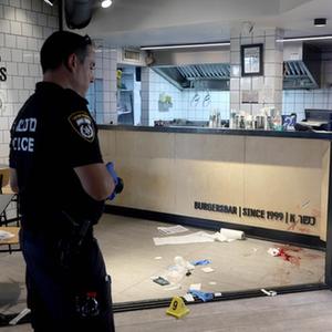8月1日,在約旦河西岸猶太人定居點(diǎn)馬阿勒阿杜明,以色列警察在襲擊事件現場(chǎng)附近工作。