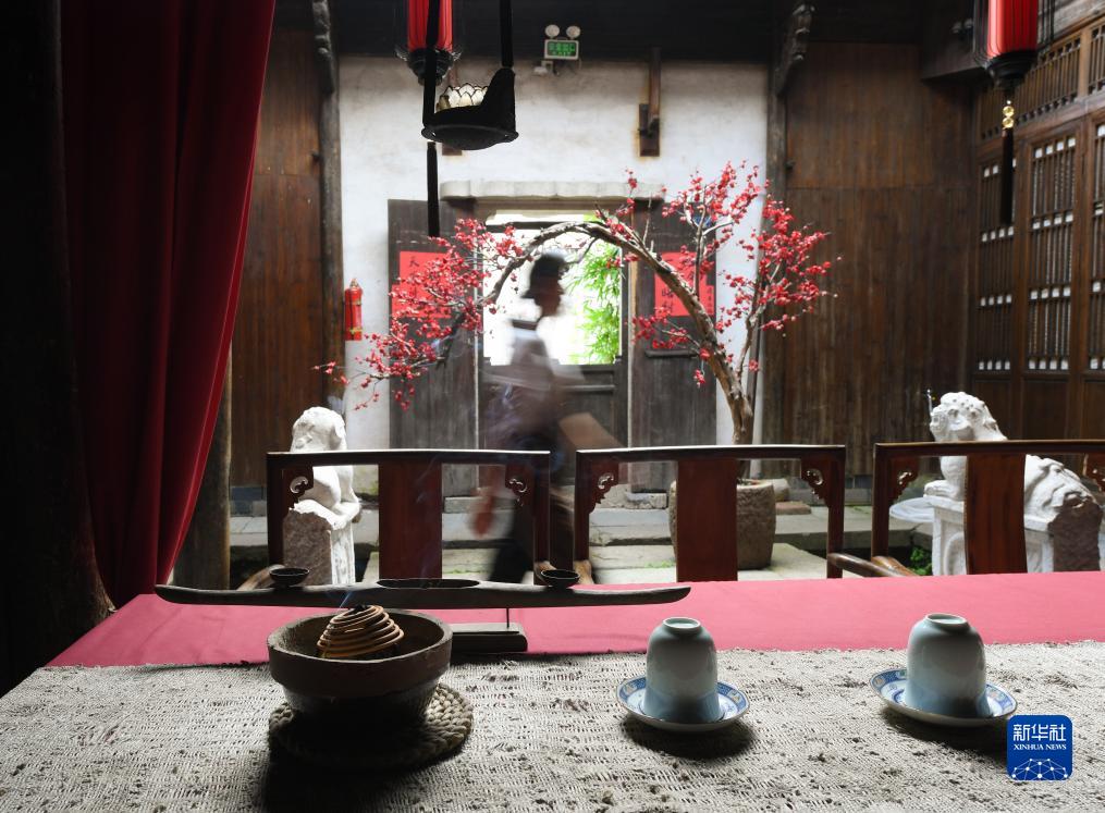 8月1日,工作人員從諸葛村一家民宿內走過(guò)。