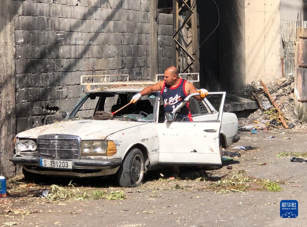 8月1日,在黎巴嫩南部西頓市附近的艾因·哈勒瓦難民營(yíng),一名巴勒斯坦男子查看汽車(chē)受損情況。