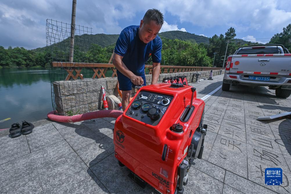 8月2日,浙江省湖州市吳興區道場(chǎng)鄉綜合應急救援隊開(kāi)展應急救援訓練,模擬使用搶險救援排水泵排除積水。