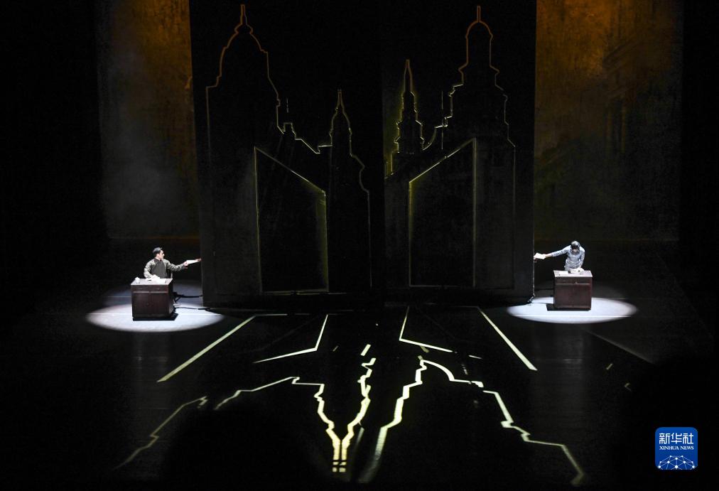 8月2日,在新疆藝術(shù)劇院木卡姆藝術(shù)團劇場(chǎng),演員在表演舞劇《秀水泱泱》。